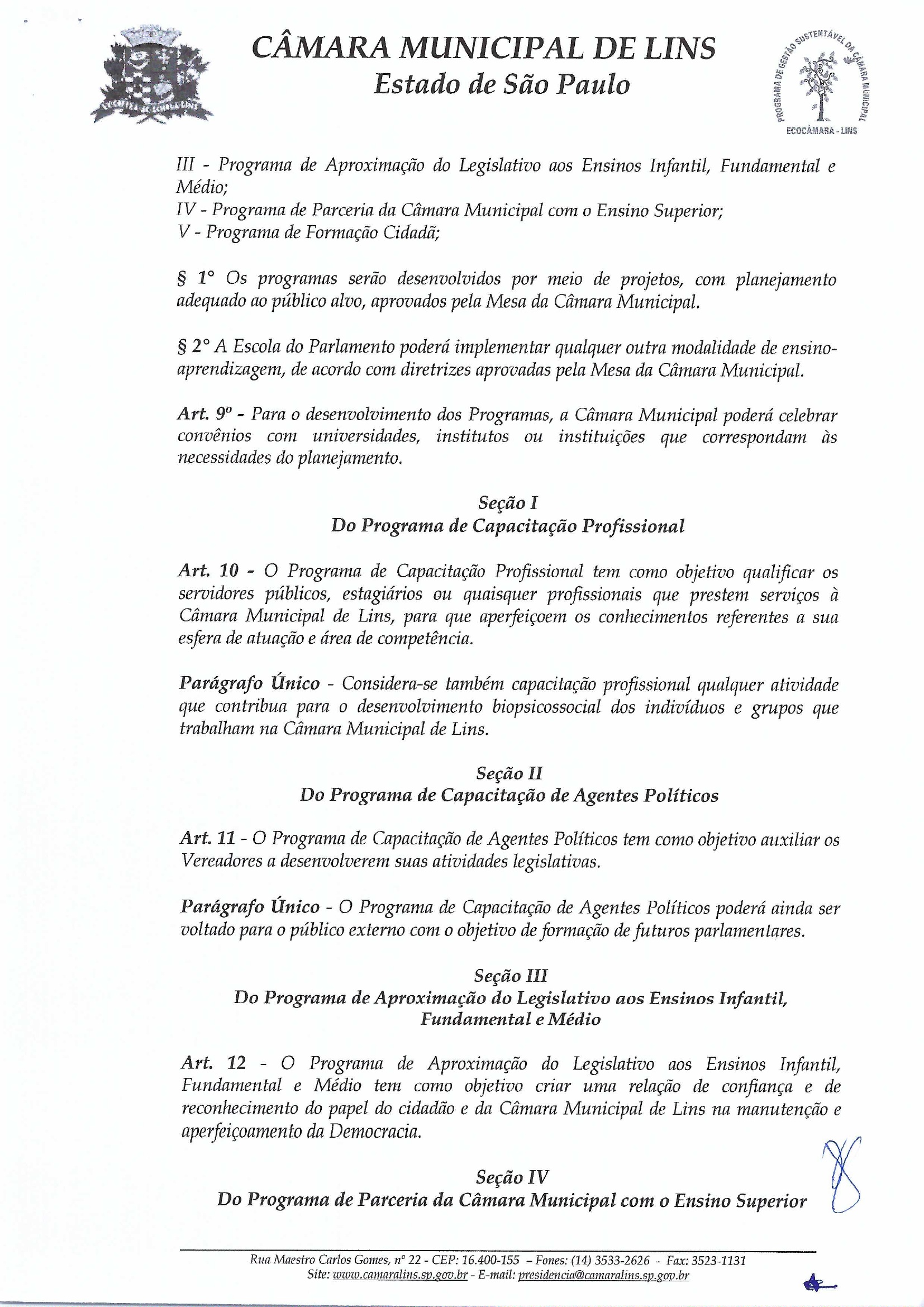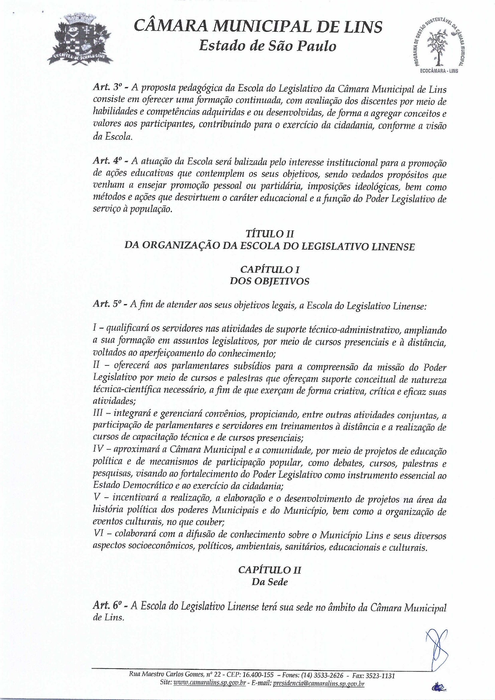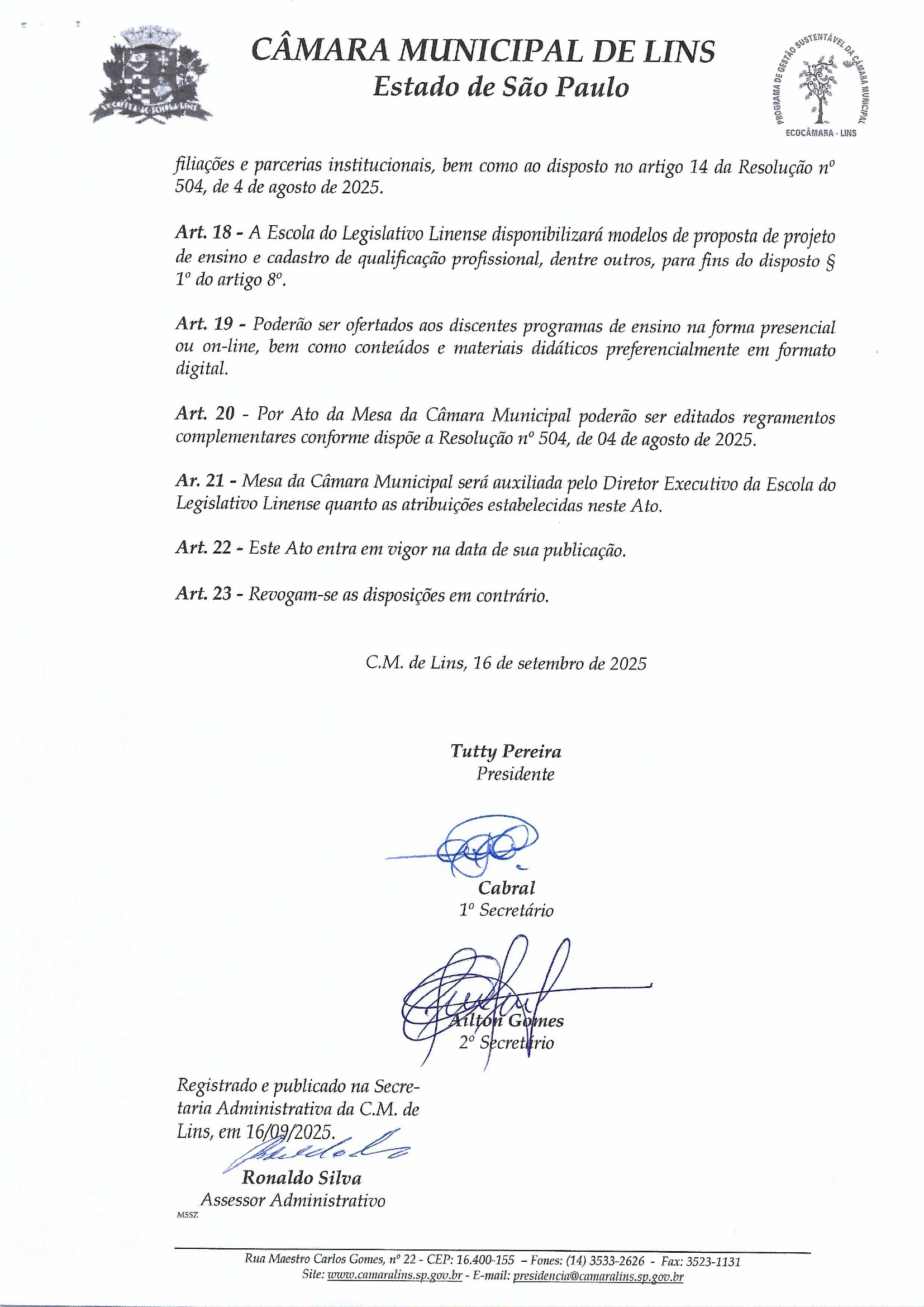 Escola do Legislativo Linense - Diretoria atual